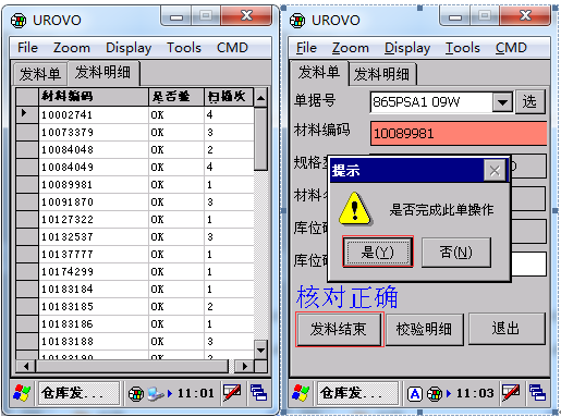 本系統(tǒng)通過(guò)與ERP系統(tǒng)同步或者導(dǎo)入工廠每一個(gè)生產(chǎn)工單的物料需求表,獲得物料的需求計(jì)劃。再通過(guò)PDA軟件界面顯示應(yīng)備貨的物料品種PN號(hào)和數(shù)量,倉(cāng)庫(kù)人員通過(guò)PDA的物料需求備貨,車(chē)間通過(guò)PDA掃碼核驗(yàn)物料,整個(gè)備貨全程無(wú)紙化作業(yè)而且規(guī)避了人為失誤。