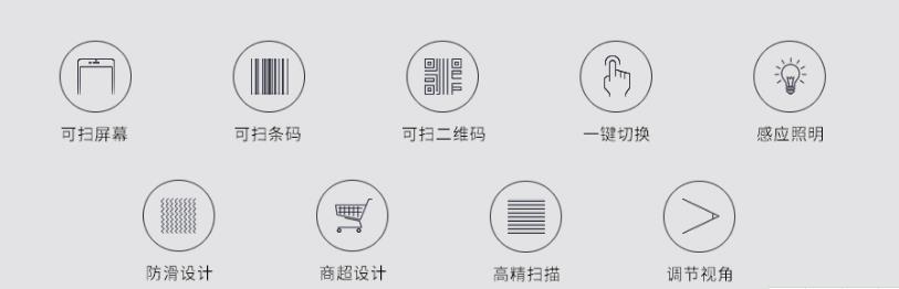防滑面舒適化設計:外腦側面防滑設計手感舒適,底部橡膠防滑四角平穩掃碼